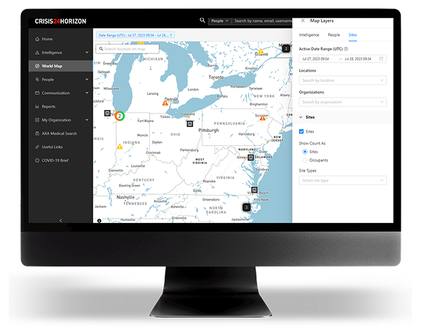 Monitor the locations and risk exposures of your travelers as events unfold.