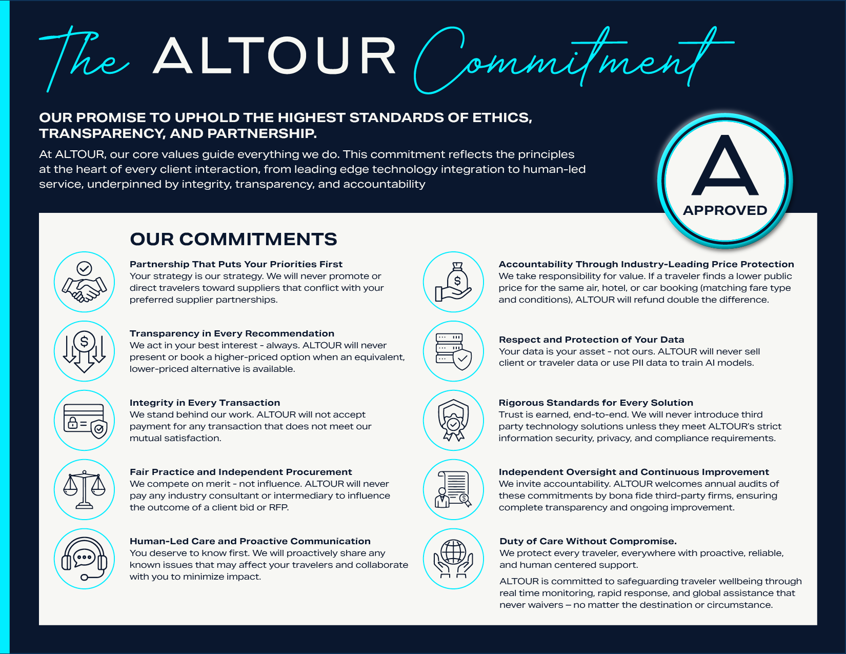 That is why we created The ALTOUR Commitment, a pledge that makes our principles visible and non-negotiable.